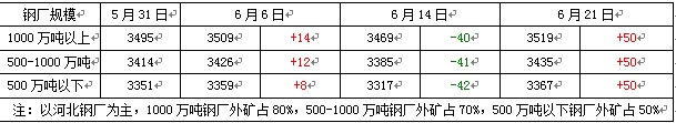 6月上旬全国粗钢日均产量环比增长0.09%至215.63万吨,仍保持较高水平。同时,经过近两个月的打压后,目前钢厂原料到货情况一般,特别是一些小钢厂库存偏紧,短期有补库的需要。不过,考虑到6月底前后两周资金面较为紧张,且钢厂对后市多持悲观态度,原料价格上涨时间和力度都相对有限。此外,近期钢厂检修也有所增多,华东一些主导钢厂将高炉检修时间提前,原料市场需求也将受到一定影响。预计下周国内钢坯和进口矿价格将先涨后跌,废钢、焦炭、煤炭将以稳为主。[文] 西本新干线特邀撰稿人 谦文2013/6/21