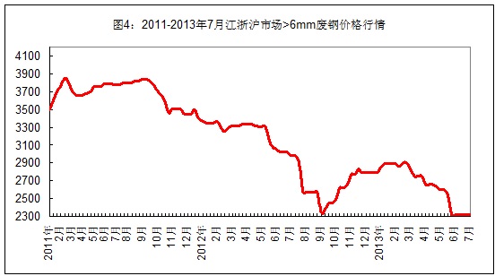 本周国内市场废钢价格小涨上涨。截止本周五,江浙沪地区重废(>6mm)价格为2360-2400元/吨,边角料价格为2420-2460元/吨,较上周末上涨20-30元/吨;福建、山东市场价格上涨30元至2450-2530元/吨。两湖、两广地区重废主流价格保持2450-2500元/吨。辽宁、天津市场重废价格保持2480-2500元/吨;河北唐山小电炉开工率维持69%,日到货量较上周增加约3%,现钢厂采购价格多在2300元/吨左右(不含税)。7月份以来,国内螺纹钢价格涨幅普遍达到50-100元/吨,但废钢市场表现平淡,除少数小钢厂提价补库外,大中型钢厂仍保持观望态度。不过,考虑到近期铁矿石价格也上涨明显,而废钢整体资源相对偏紧,预计下周部分大中型钢厂也将加入补库行列,国内市场废钢价格将小幅回升。