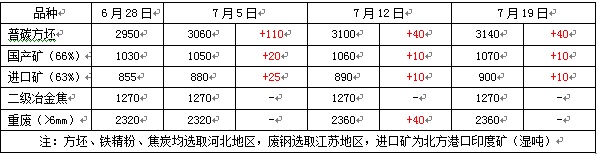 虽然中钢协公布的7月上旬粗钢产量有所回落,但仍保持较高的水平,且相对于目前的钢材价格和产量来说,原料价格仍处于相对低位。目前国内不少钢厂已处于盈利状态,短期内将继续积极补库,原料市场需求相对旺盛。预计下周国内市场钢坯、国产矿、废钢价格将继续小幅上涨,局部地区焦炭价格也有望试探性走高,进口矿涨势则将暂时告一段落。[文] 西本新干线特邀撰稿人 谦文2013/7/19