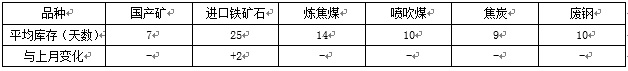 从库存情况看(见表4),本周钢厂进口矿采购力度明显加大,库存上升明显;煤焦仍处于提价商谈过程中,废钢则现货资源紧张,整体库存变化不大。
