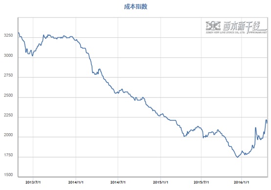本月国内板材企业对5月份热轧、冷轧、中厚板等主流产品出厂价格全面上调,其中宝钢上调150元/吨,鞍钢上调200-360元/吨,武钢上调170-300元/吨,反映出在汽车行业产销回暖、造船行业新接订单回升的局面下,板材企业订单情况维持良好。建筑钢材厂家在本月钢价飚升的情况下,对出厂价格也是罕见大幅上调,限量、封库、涨价成为钢厂不断推出的手段。华东地区主导钢厂沙钢在4月上、中、下旬对螺纹钢出厂价格分别上调50元/吨、80元/吨和550元/吨,本月累计涨幅达680元/吨;华北地区主导钢厂河北钢铁对4月份结算价格大幅上调425-525元/吨。据中钢协统计,96家大中型钢铁企业2016年3月份实现销售收入2106.29亿元,实现利润总额25.56亿元,为2015年下半年以来首次实现月度盈利。4月份随着各大钢企出厂价格的全面上调,行业盈利面将明显扩大。