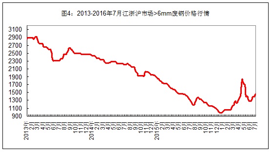 从库存情况看(见表4),受洪水影响,本周湖北、湖南、江西、安徽等地钢厂铁矿和煤炭运输都受到明显影响,原料库存普遍下降,不少钢厂将生产计划调整为“以煤定焦,以焦定钢”。废钢方面,华东主导钢厂普遍提价带动废钢到货量增加,整体库存略有上升。