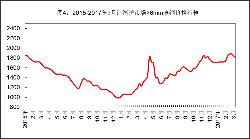 受钢材价格回落影响,本周国内废钢市场价格呈小幅下跌走势,部分贸易商顺势出货,钢厂到货量仍保持较高水平。截止本周四,江浙地区重废(>6mm)价格降至1820-1850元/吨,边角料价格为1890-1940元/吨,较上周末下跌30元左右,部分地区小规格废钢跌幅更大,达到50-80元;两湖、两广地区重废主流价格下跌30元至,现多在1750-1770元/吨,福建市场重废下跌50元至1650元/吨左右;唐山地区多数电炉钢厂仍处于停产状态,重废市场报价多在1700元/吨左右(不带票),较上周下跌50-70元。目前市场上重废与螺纹钢的价差仍保持在1800元左右,但与铁水成本的价差只有300元/吨左右,大中型钢厂仍更倾向于使用铁水或生铁,对与废钢用量增长并不明显,而小电炉钢厂的需求仍受到打击地条钢及环保整顿的压制,导致了废钢与钢材的价差居高不下。预计下周国内废钢市场将继续以小幅调整为主。
