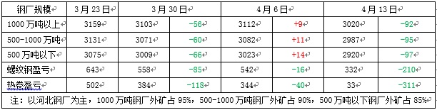 随着焦炭涨势放缓、外矿跌幅扩大,本周钢厂生产成本再度下跌。截止本周四,年产能大于1000万吨钢厂的三级螺纹钢生产成本约为3020元/吨,较上周末下降92元/吨;年产能500-1000万吨钢厂的三级螺纹钢生产成本约为2987元/吨,较上周末下降95元/吨;年产能小于500万吨钢厂的三级螺纹钢生产成本约为2920元/吨,较上周末下降97元/吨。本周国内钢材市场大幅下跌,截止本周四,国内市场三级螺纹钢和5.75mm热卷平均价格分别为3507元/吨和3208元/吨,分别较上周末下降221元/吨和322元/吨。对应20天前的原料成本,目前国内钢厂螺纹钢盈利已经缩小至332元/吨,热卷仅盈利33元/吨。若按当期成本计算,螺纹钢盈利487元/吨,热卷盈利188元/吨。
