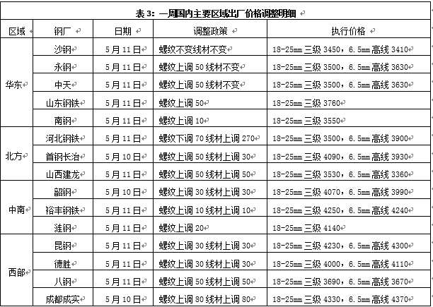 1、本周钢厂调价