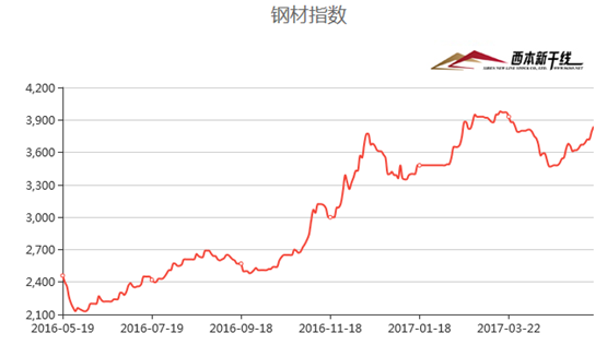 ●综合观点:4月份国内粗钢日均产量创下历史新高,同时房地产及基建投资增速加快,显示国内钢材市场供需两旺。在地条钢清理加快及环保治理不断加码的情况下,短期国内市场供应依然偏紧,部分市场资源规格短缺明显。而上周末以来监管层连续释放积极信号,或意味着后续相关金融监管措施将会更加注重力度和节奏,有利于市场信心恢复。短期国内钢价或将延续上涨态势。基于此,对下周市场维持偏积极评价——红色预警。具体来说,西本指数下周将在3850-3950元/吨区间震荡上行。