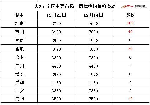 本周申城建材价格窄幅震荡盘整,截至12月20日,西本指数报在4060元/吨,与上周末持平;同期,沪上优质品三级螺纹钢代表规格报在3850元/吨,较上周末价格上涨10元/吨;而沪上优质盘螺代表规格报价4040元/吨,较上周末持平。
