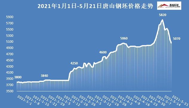 钢坯方面:本周国内钢坯行情巨幅下跌,截止发稿,唐山普方坯含税价报5070元/吨,较上周末大跌600元/吨,较上月末上涨80元/吨。库存方面,5月21日早8点,唐山象屿正丰库钢坯库存7.54万吨,海翼宏润库存量为14.97万吨,物产震翔库存量为2.84万吨,三个主要仓库钢坯合计为25.35万吨,较昨日减少0.26万吨,较上周末减少5.82万吨。市场方面:周初以来,受期货盘面连续弱势下跌,下游采购明显放缓,生产端迫于市场压力,接连下调出厂价格。另据跟踪统计,唐山仓储库存连续二周降库,等市场情绪释放完后,将存在有效托底。预计,下周国内钢坯跌幅放缓,以弱势震荡调整为主。